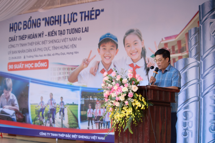 Sáng ngày 29/8, tại Trường Tiểu học An Bài (xã Phụ Dực, Hưng Yên), Công ty TNHH Thép Đặc Biệt Shengli Việt Nam phối hợp cùng UBND xã Phụ Dực long trọng tổ chức Lễ trao học bổng “Nghị lực Thép” 2025. Quỹ học bổng không chỉ mang đến sự hỗ trợ về vật chất, mà còn là nguồn động viên tinh thần, tiếp sức cho những học sinh vượt khó, khích lệ lòng hiếu học và nuôi dưỡng ước mơ tri thức cho thế hệ trẻ.