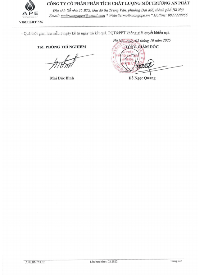 KẾT QUẢ QUAN TRẮC KHÍ THẢI QUÝ 1 NĂM 2025
