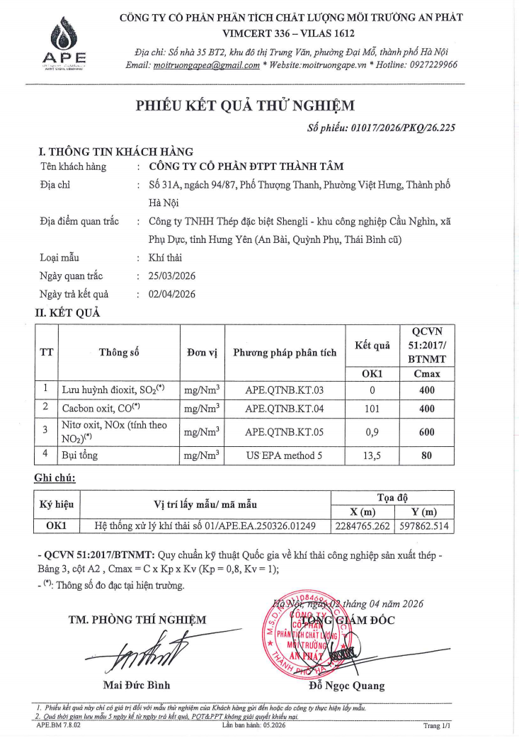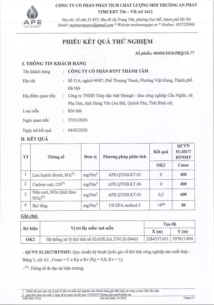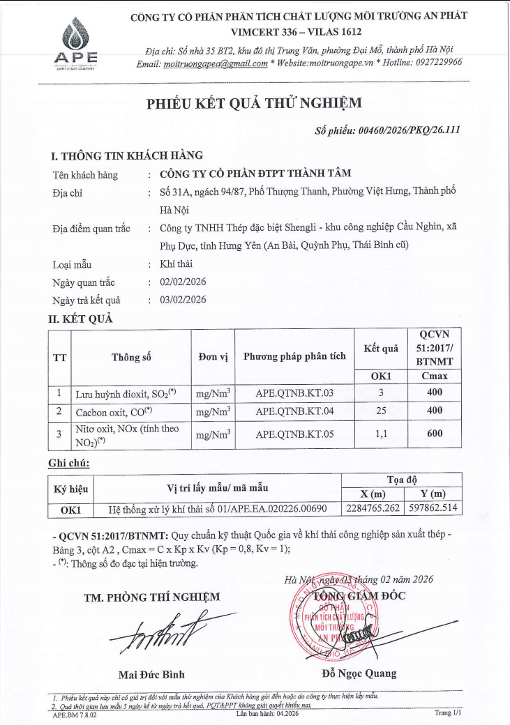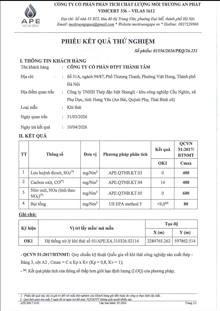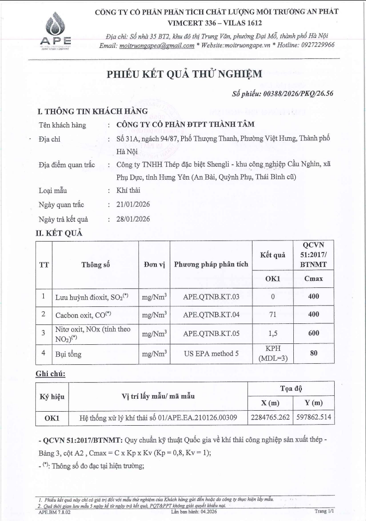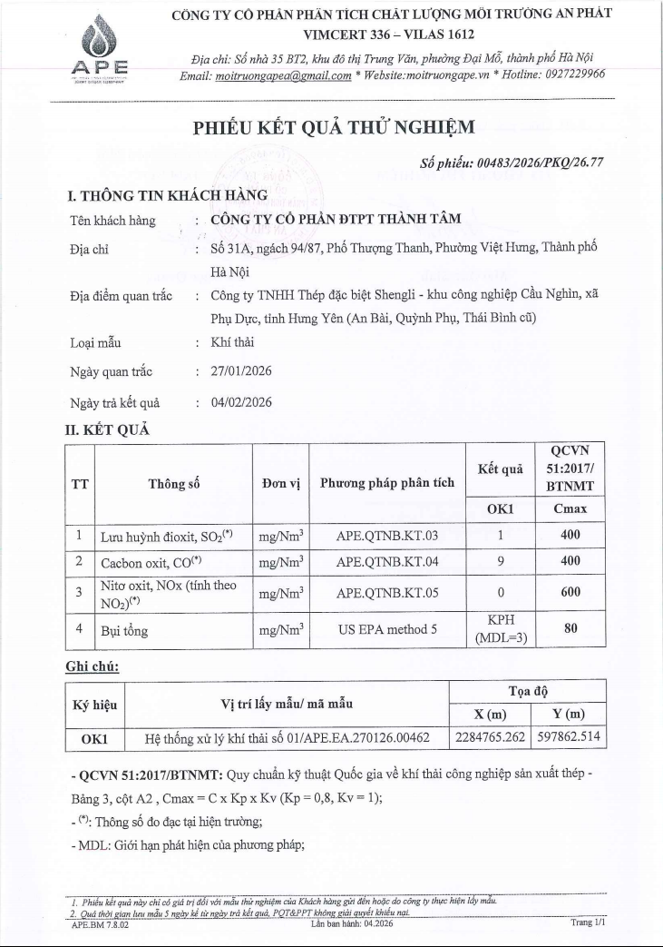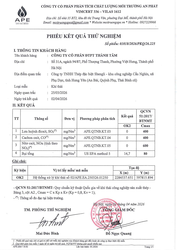 KẾT QUẢ QUAN TRẮC ĐỊNH KỲ QUÝ I.2026 CUA ỐNG KHÓI 3