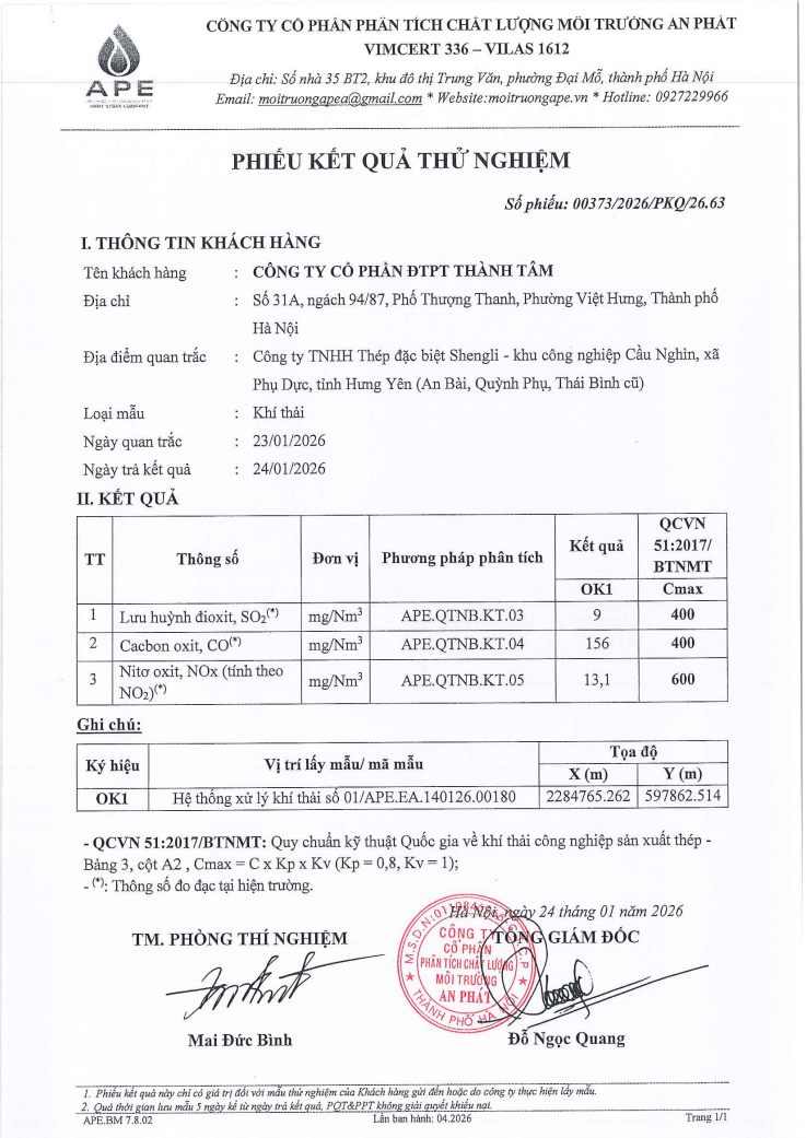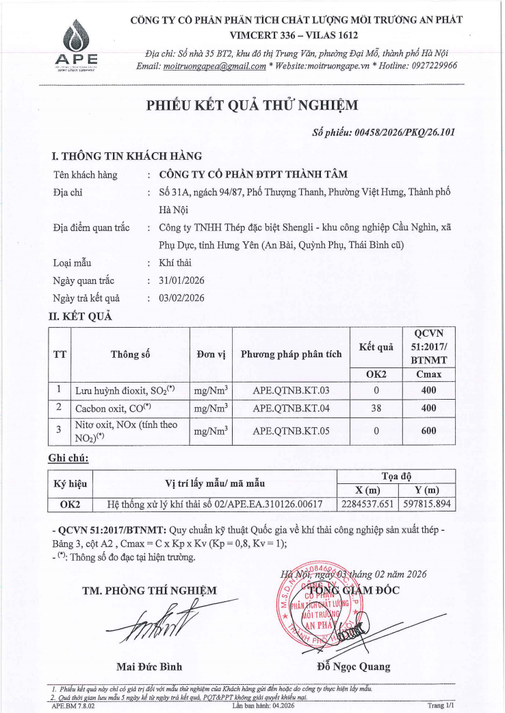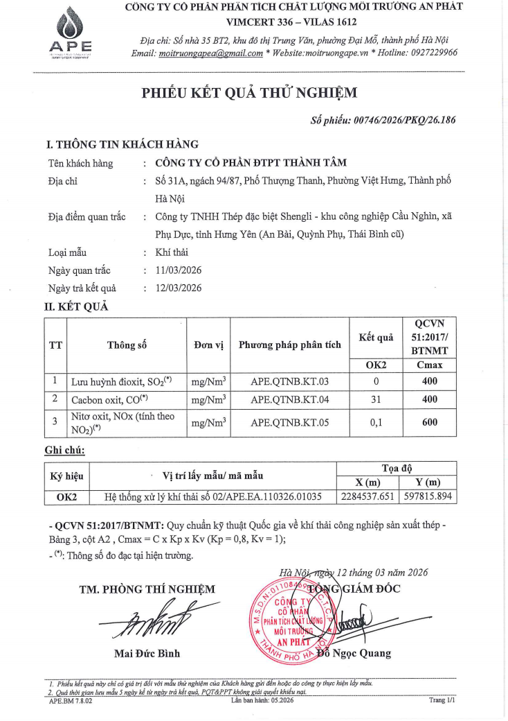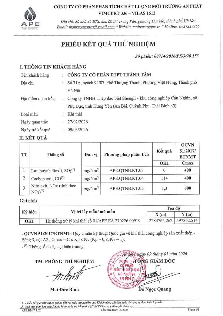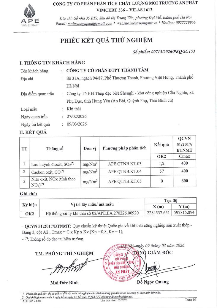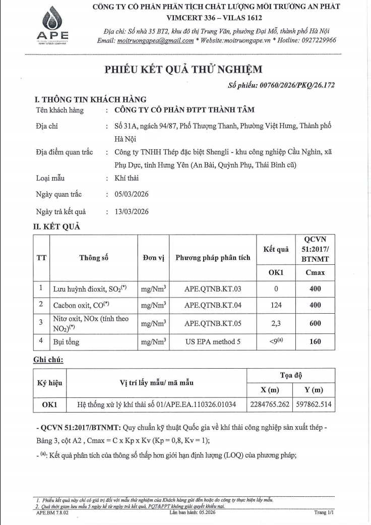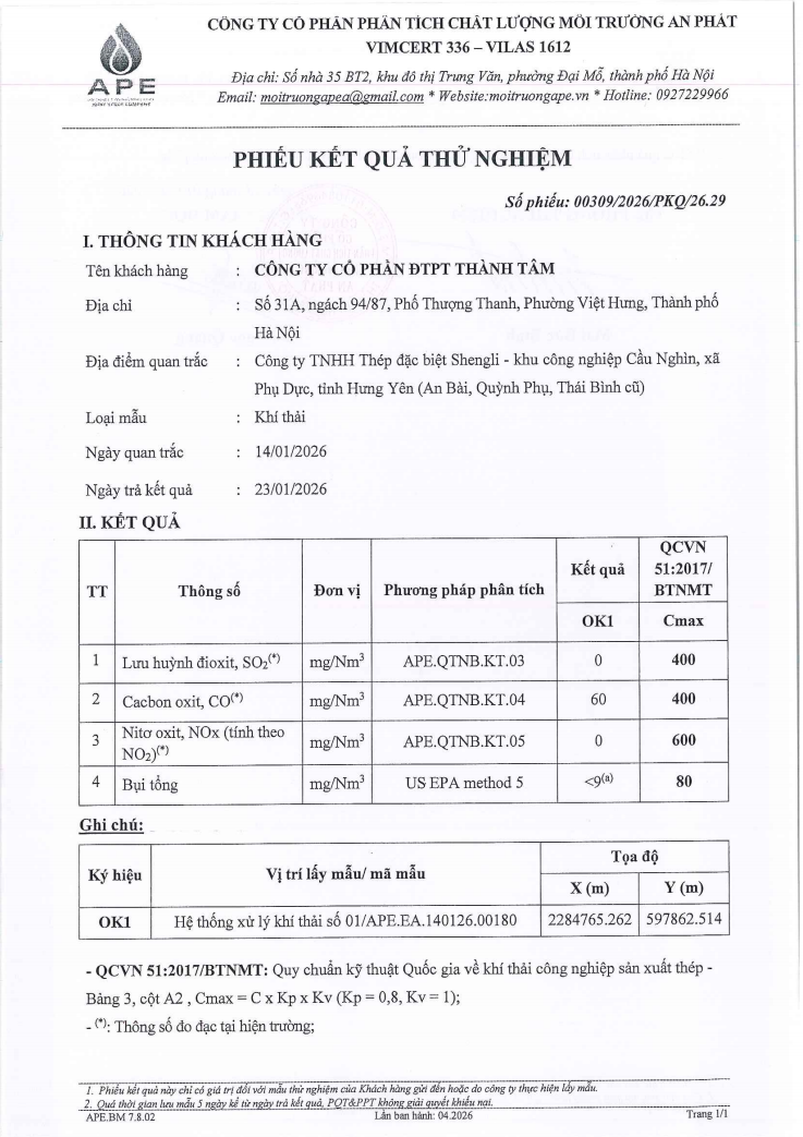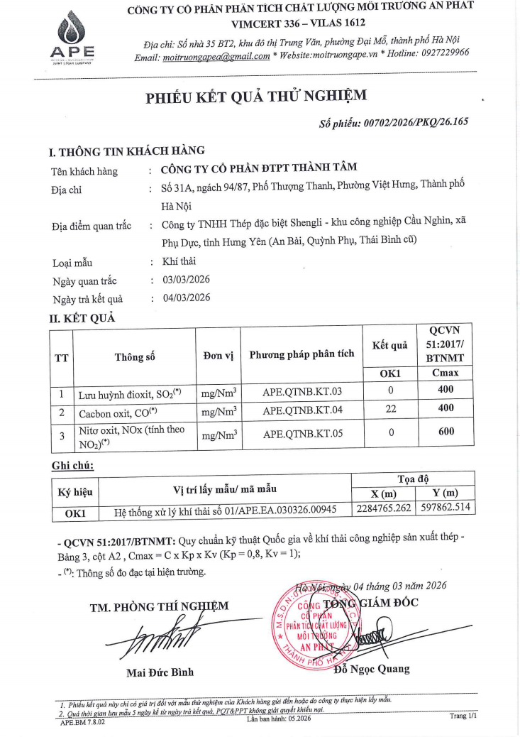KẾT QUẢ QUAN TRẮC ĐỊNH KỲ QUÝ I.2026 CUA ỐNG KHÓI 3