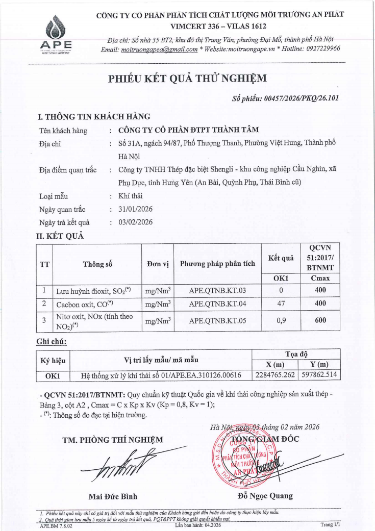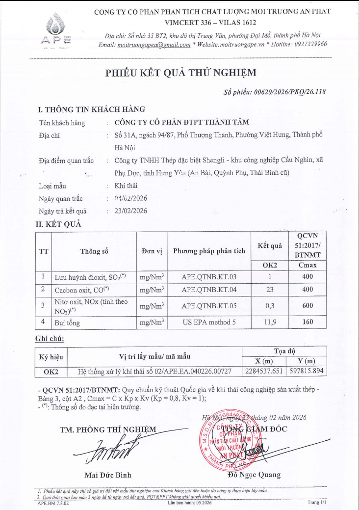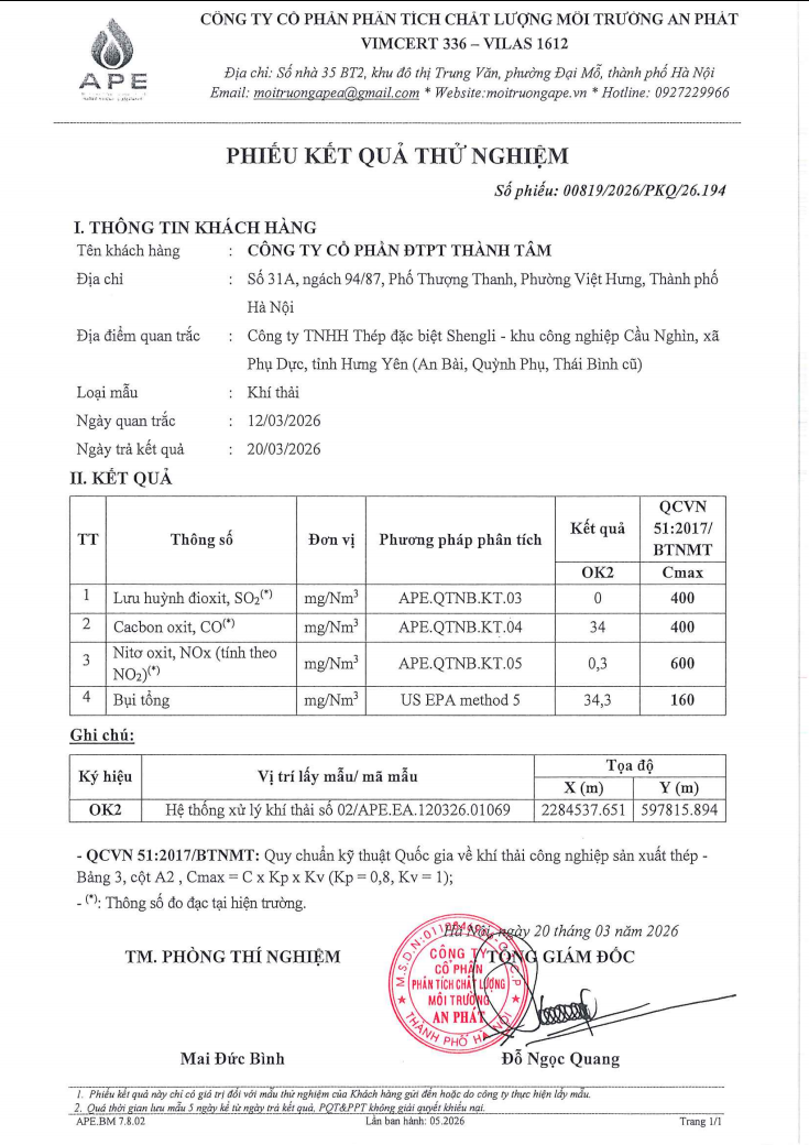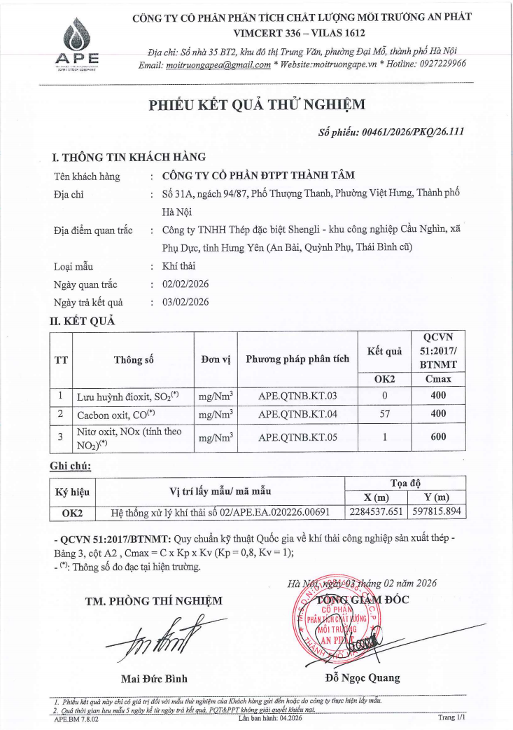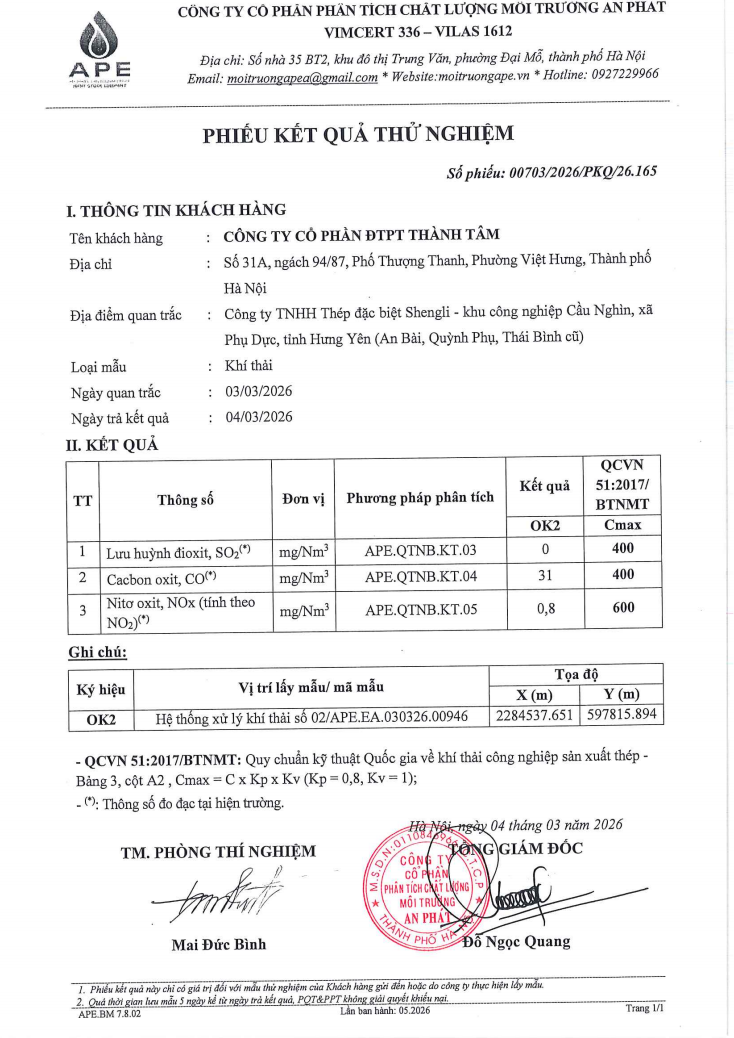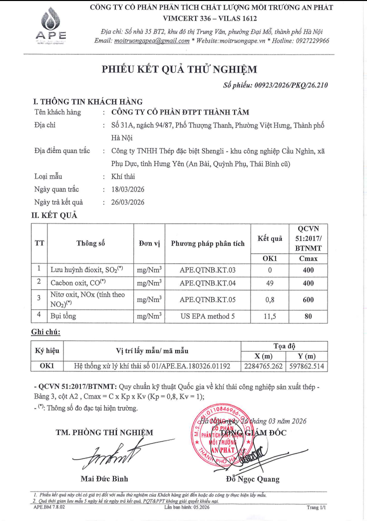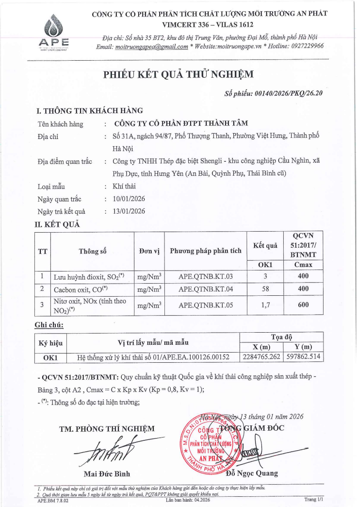 KẾT QUẢ QUAN TRẮC ĐỊNH KỲ QUÝ I.2026 CUA ỐNG KHÓI 3