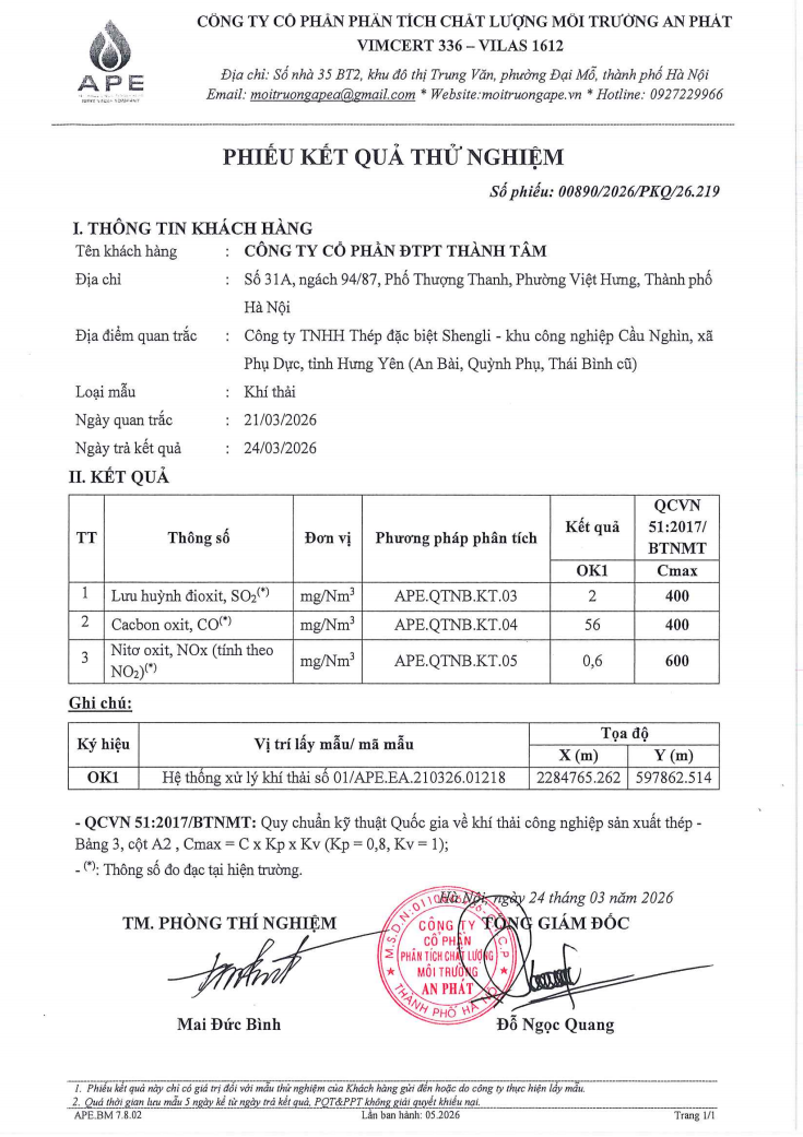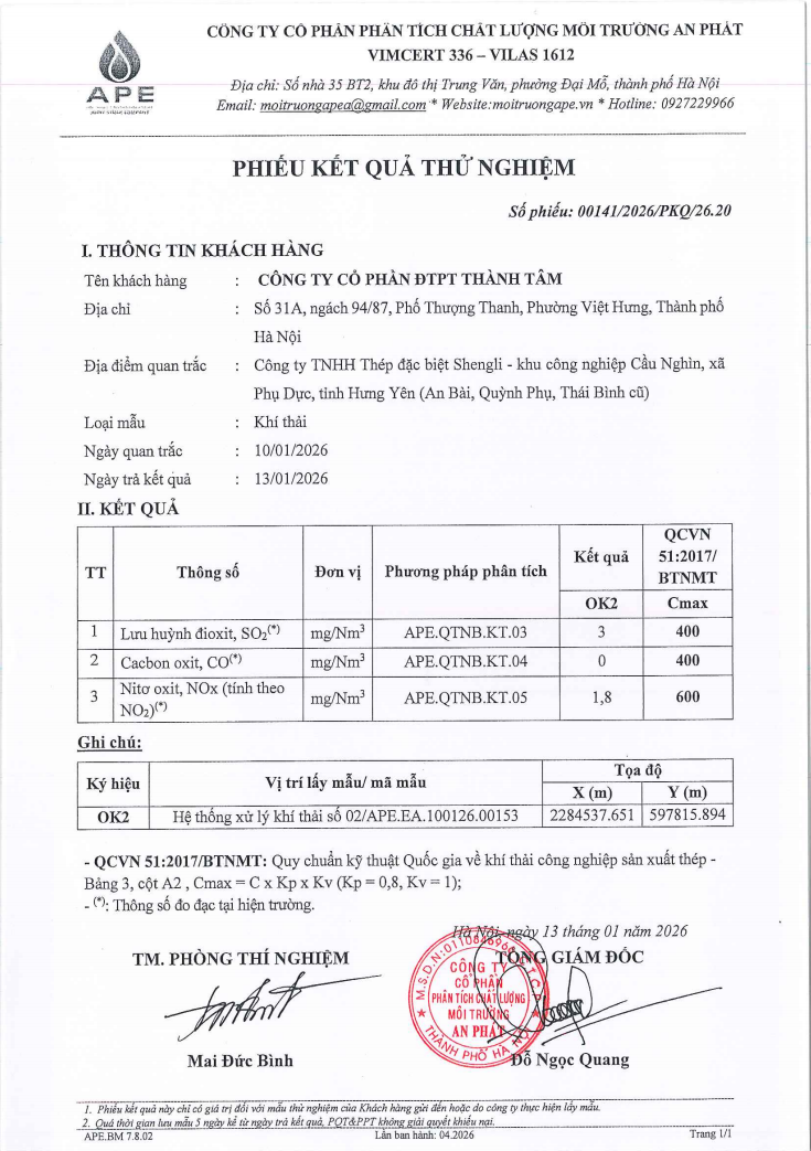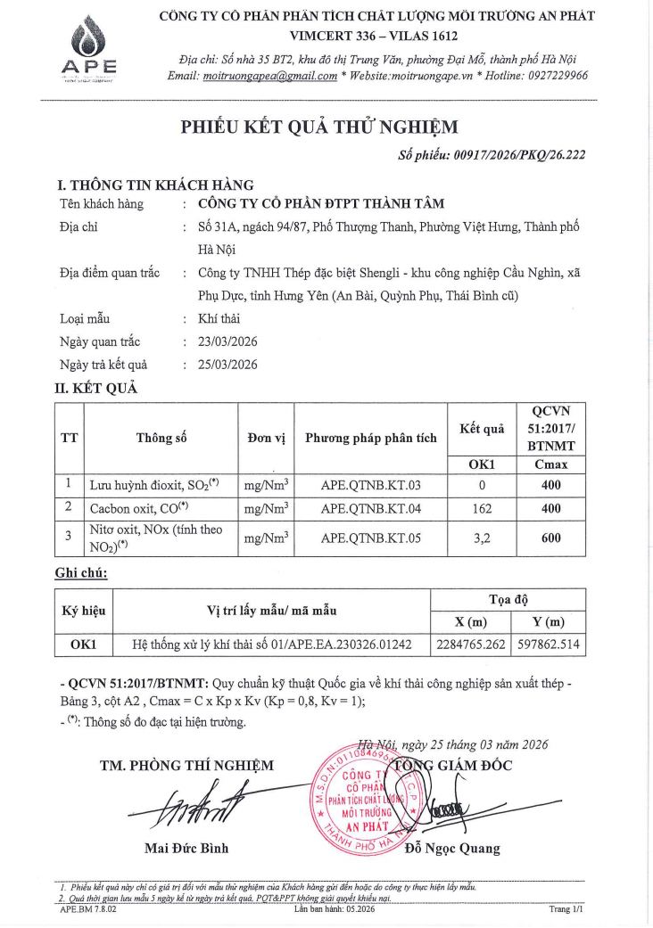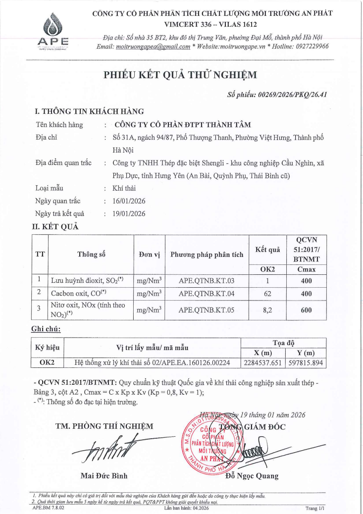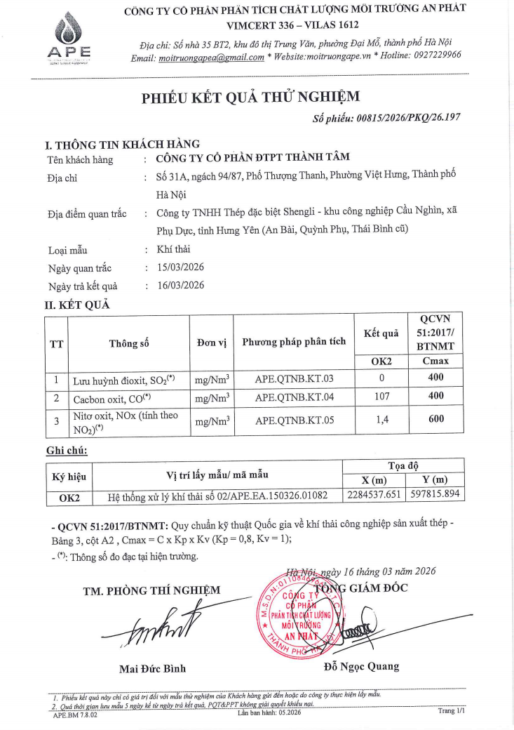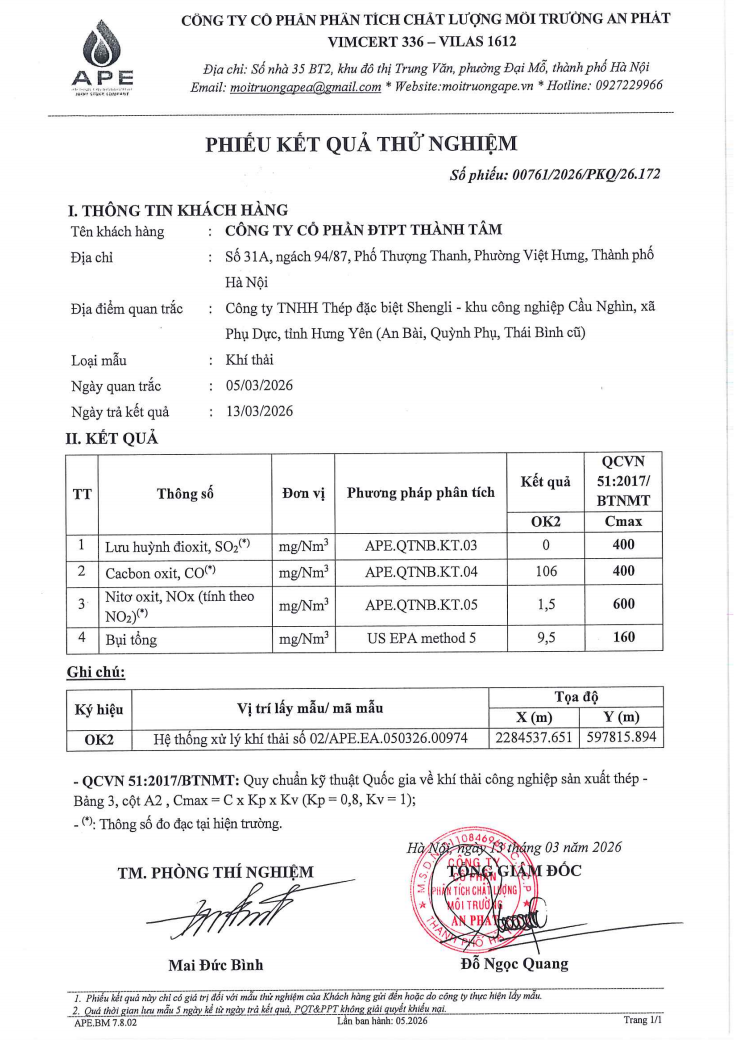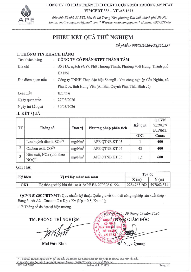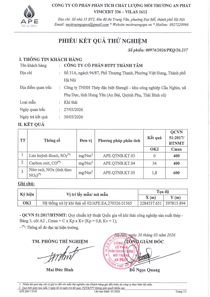 KẾT QUẢ QUAN TRẮC ĐỊNH KỲ QUÝ I.2026 CUA ỐNG KHÓI 3
