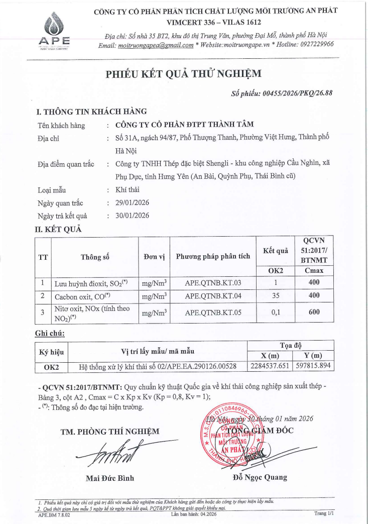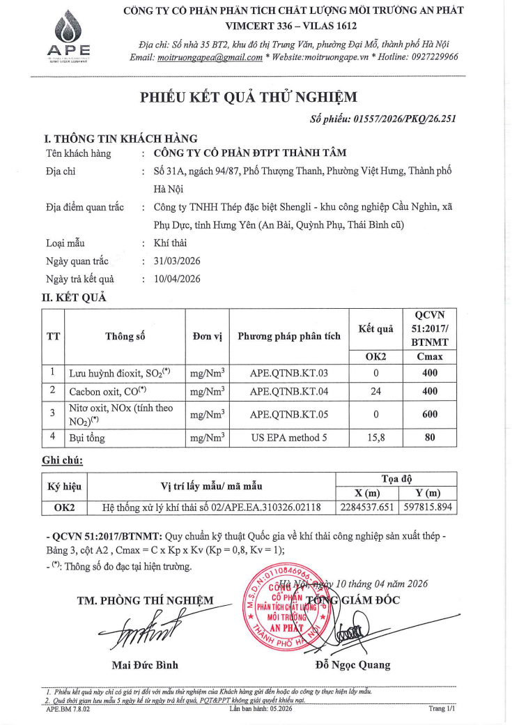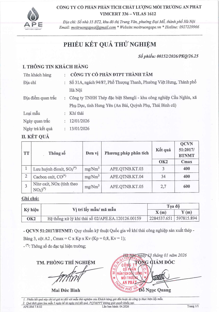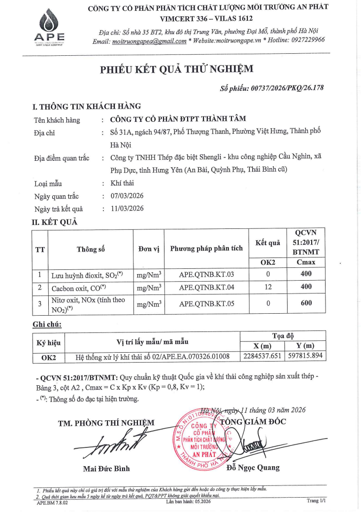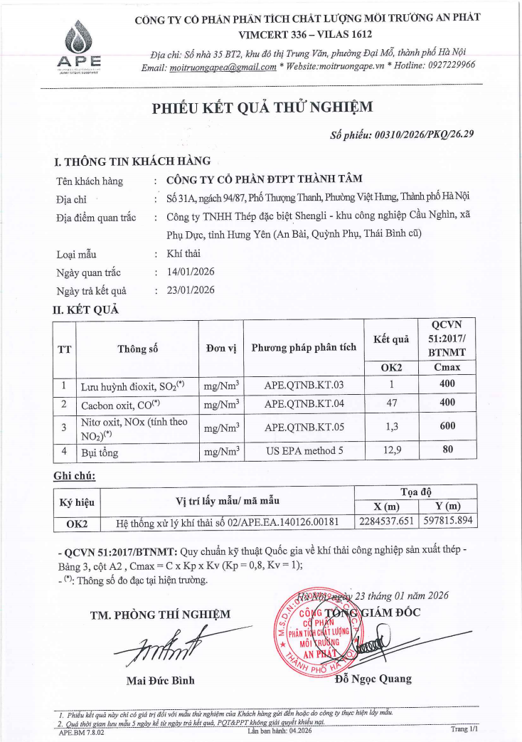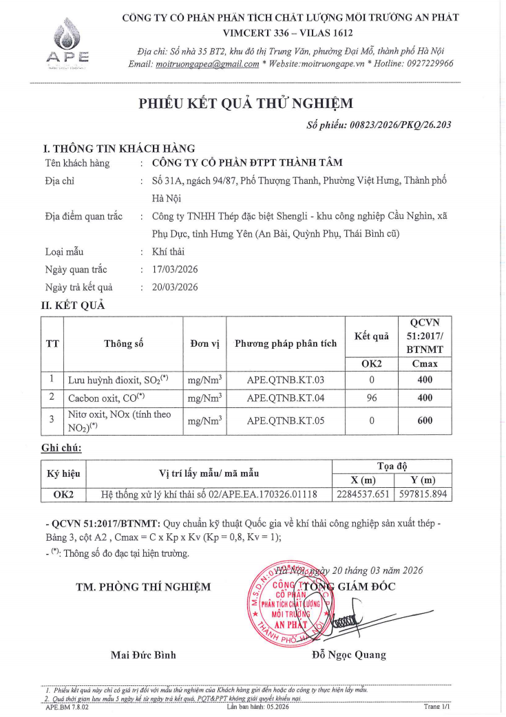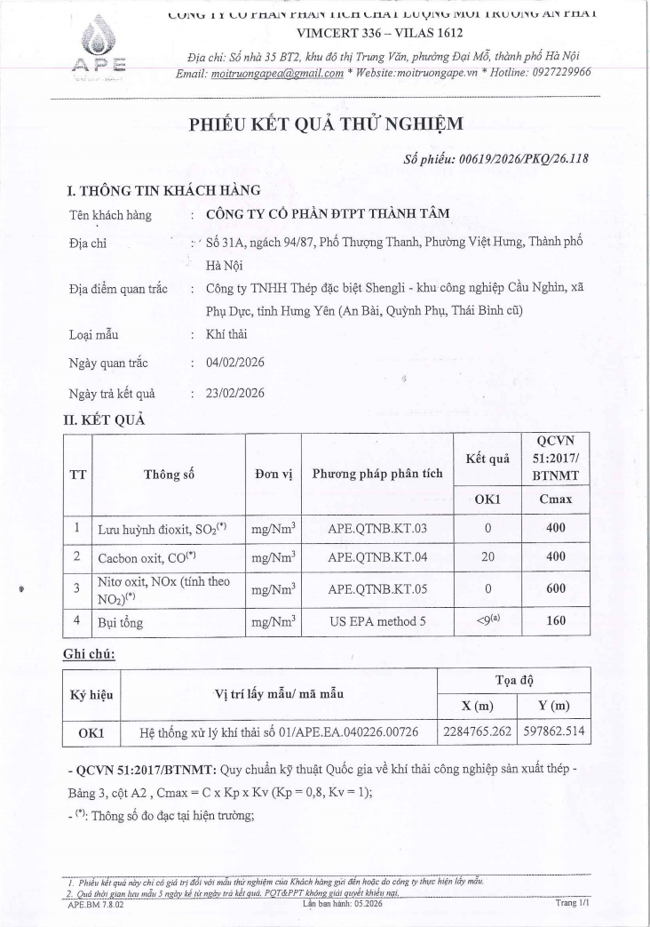 KẾT QUẢ QUAN TRẮC ĐỊNH KỲ QUÝ I.2026 CUA ỐNG KHÓI 3