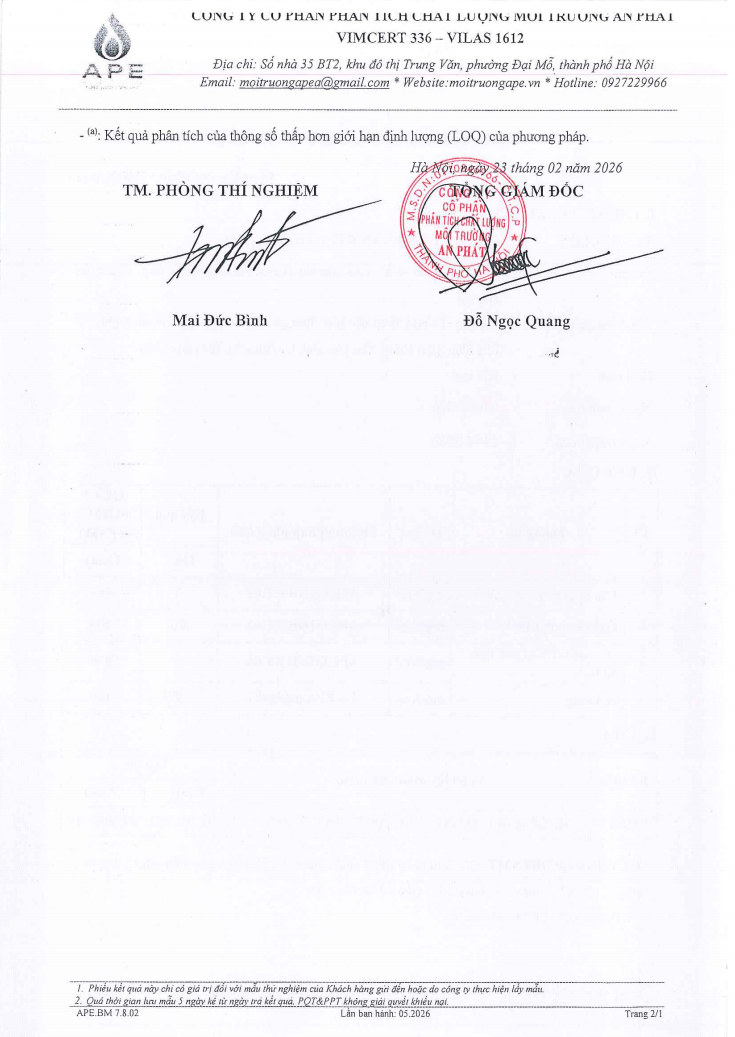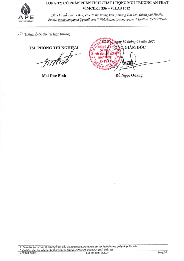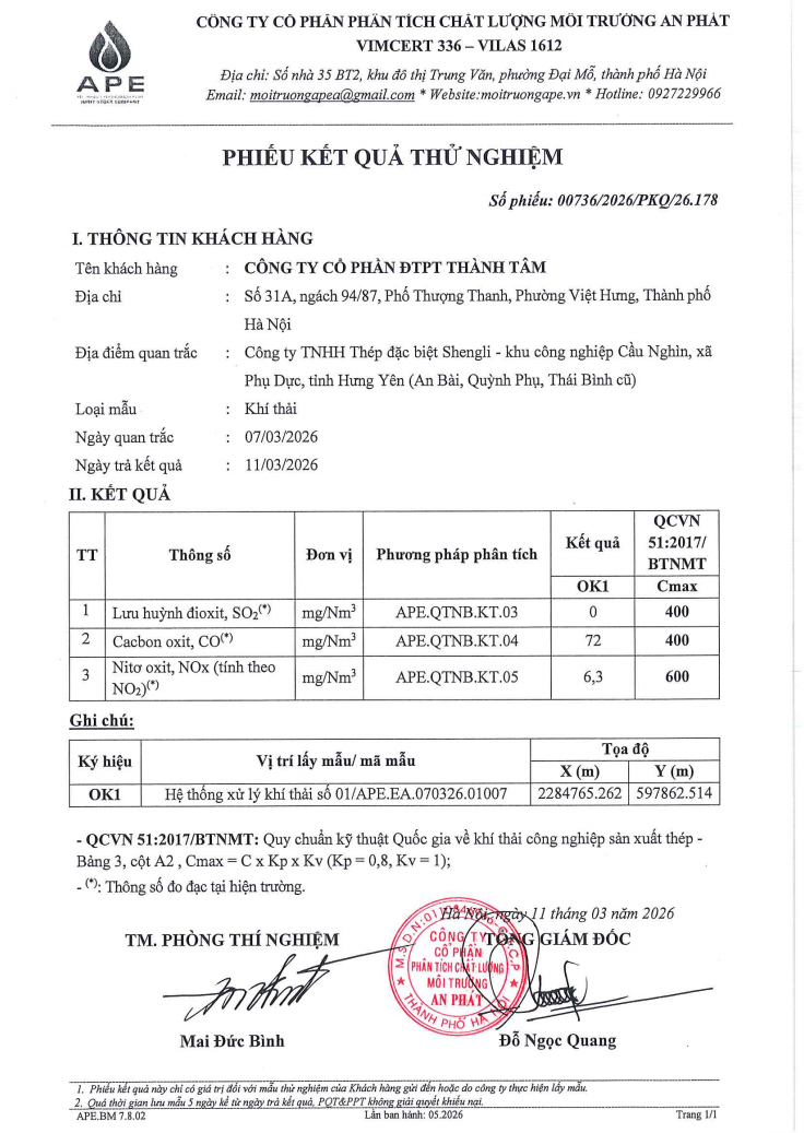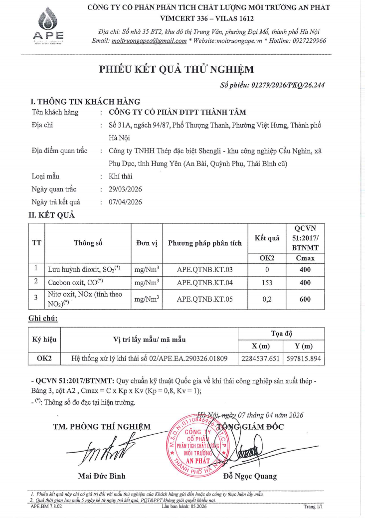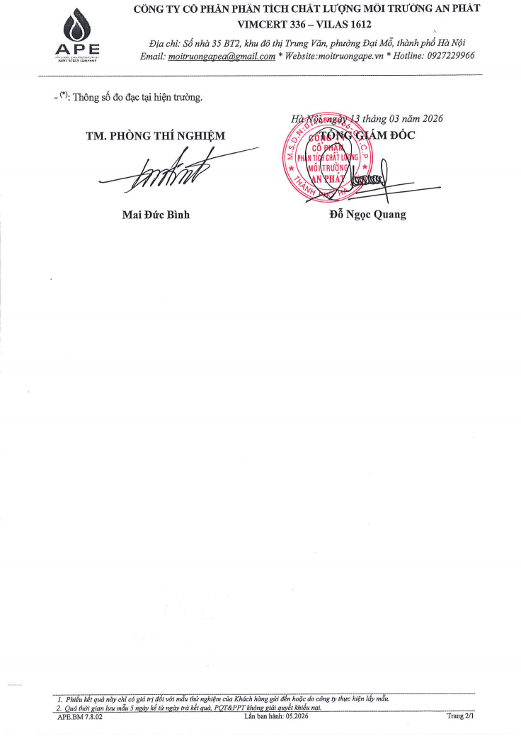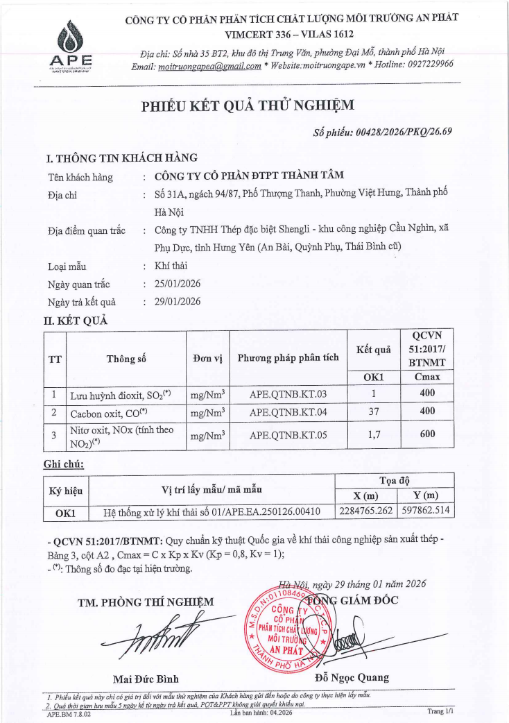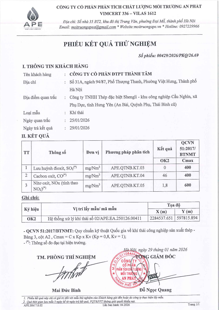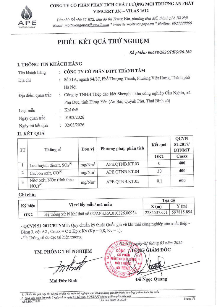 KẾT QUẢ QUAN TRẮC ĐỊNH KỲ QUÝ I.2026 CUA ỐNG KHÓI 3